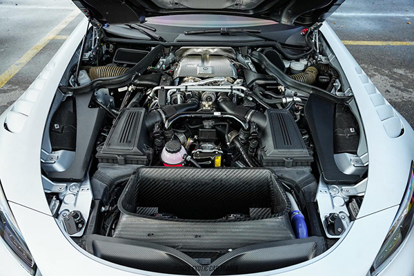Under the hood, the Track Series gets even more serious. Engine output rises to 734 horsepower to help with lap times. You’ll notice that a lot of added scoops and cowls are now in place to help aid in cooling the 4.0 liter twin turbo V8. After all, AMG knows this will be on a track where it’ll be pushed to the max after every apex. More interesting though is the transmission. Out goes the usual 7-speed automatic and in its place is a Hewland HLS sequential gearbox. No more torque converter or multi-clutch soft-for-the-road gearbox here.