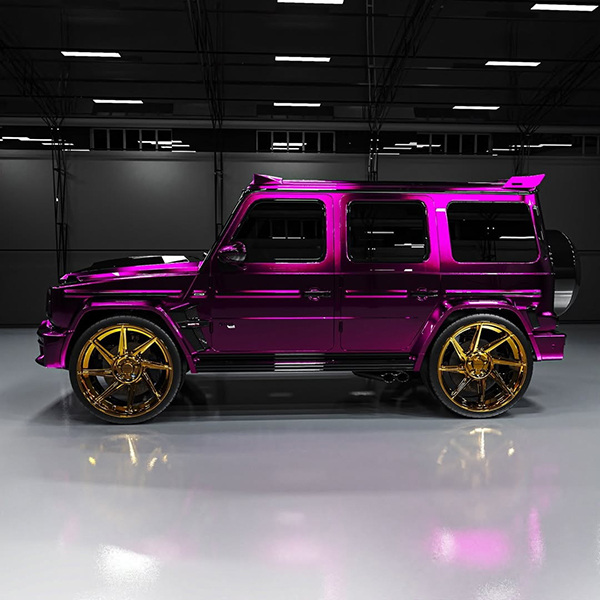 This Mercedes-AMG G 63 has a stunning exterior paint finish that makes it extremely visible. And we’re not just talking about normal SUVs, as something like this would stand out in a sea of exotic models. It is quite smooth, for what it’s worth, and if you were wondering what the paint finish is called, it is Galaxy Purple. Some glossy black accents provide contrast, and so do those massive wheels.