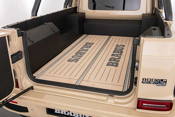 If that is not enough, then you should also know that the Brabus XLP 6×6 Adventure is also home to a carbon powerdome, carbon front skirt inserts with extra DRLs, a rear door attachment, trim on the C-pillars, side trim strips, and mirror caps that were also made of the same lightweight material. The new logo on the grille, emblems on the hood, grille, and A-pillars, and a Brabus lettering on the tailgate contribute to the six-wheel drive truck’s uprated nature.
