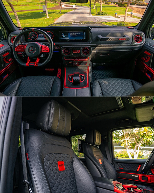 Have you noticed the red accents on the outside? Well, there are quite a few of them in the cabin too, contrasting the new Brabus-signed leather upholstery with special stitching. The steering wheel is still home to the three-pointed star brand’s emblem, and there are also some extra carbon fiber bits and pieces on the inside. These join the usual equipment, including the dual-screen setup, ambient lighting, electrically-operated seats with memory settings, sunroof, and a few other things.