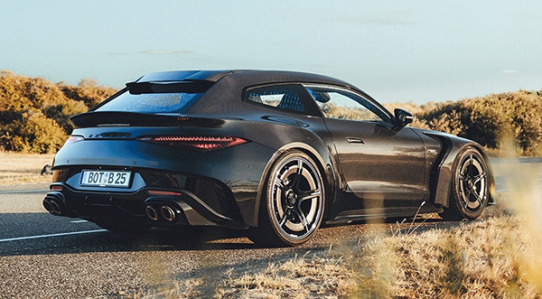 The model in question is pretty much a Mercedes Clown Shoe. The Shooting Brake builds on the Mercedes-AMG SL and features lots of carbon fiber, several custom body panels that were built from nothing, a very bold body kit with extended fenders, aggressive side skirts, a vented hood, sporty air intakes in the front bumper, and a custom back end with a pair of spoilers, a tailgate, a large diffuser, and four round tailpipes.