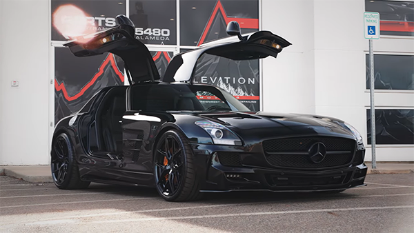 As for the stance, the performance coupe sits on an adjustable suspension system with a hydraulic lift function. At the touch of a button, it’ll raise and lower over its black Vossen wheels. Make no mention of the 300 SL-inspired gull-wing doors. Check out a walkaround video of this stunning SLS AMG below! Don’t fall in love, though; this one sold years ago.